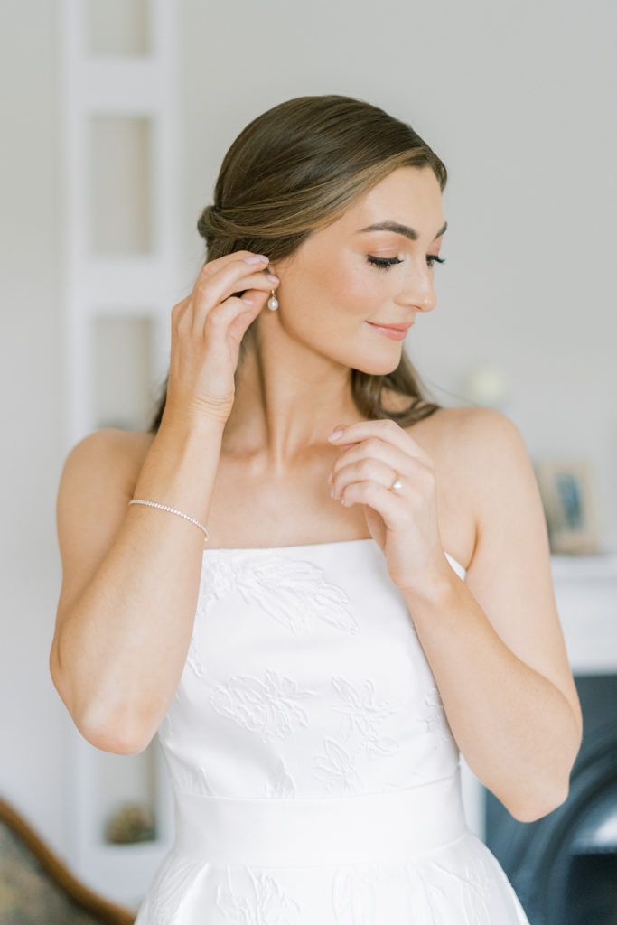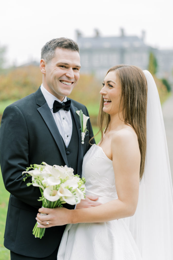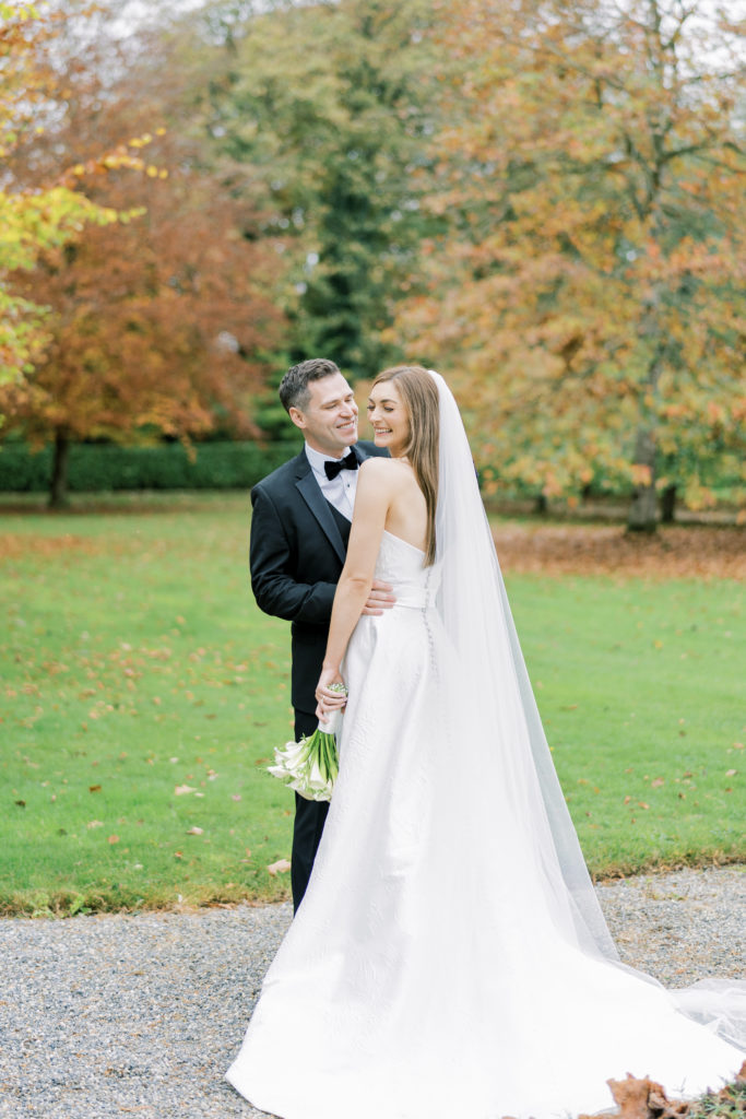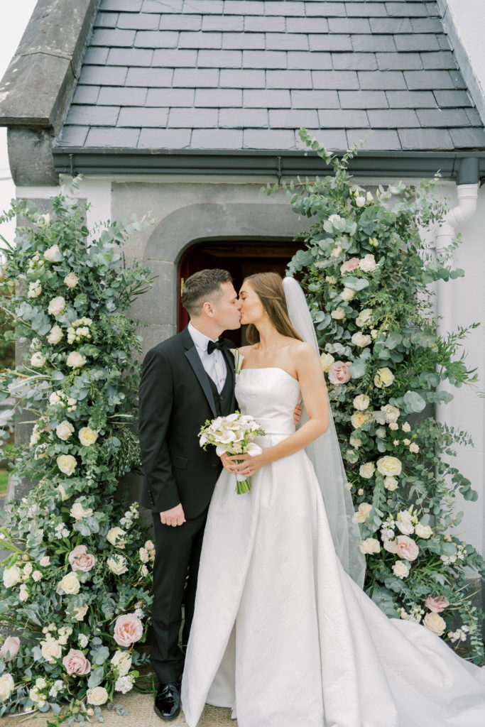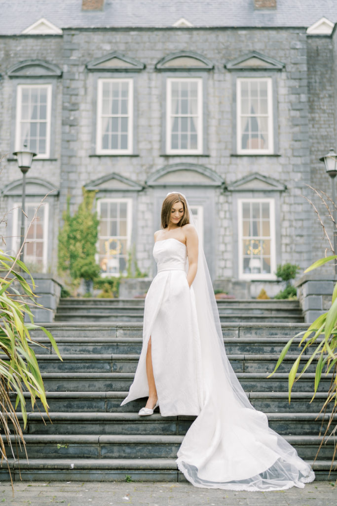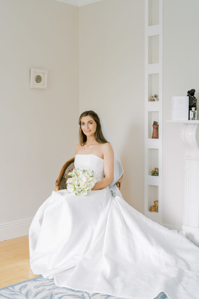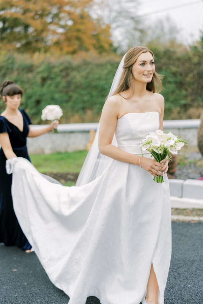 “I had an idea in my head of what I wanted, and although I never found exactly that, I fell for the material in the Jesus Piero dress, which I ultimately chose. The neckline and skirt shape matched what I had imagined but the slit was a bit different and made it so easy to walk and sit in. I actually had the top of one dress and the skirt of another, so I was nervous before it arrived. I was delighted that I loved it when it arrived in The White Room.”